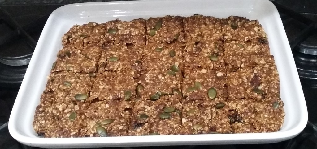 - Remove from oven, cut into squares with a sharp knife but leave in the tin until completely cooled